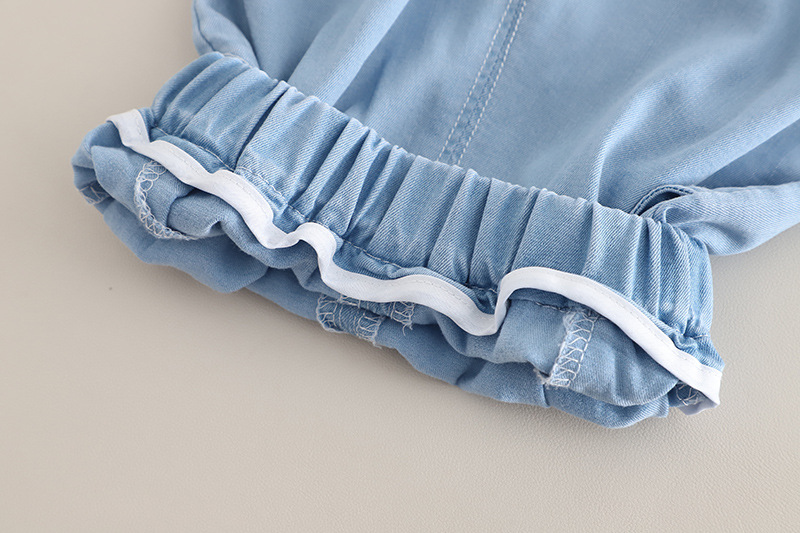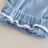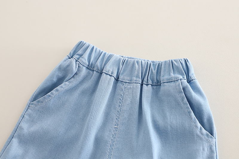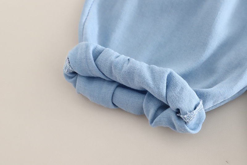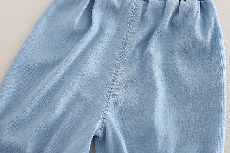 – Pantaloni scurți din chambray bleu, cu croială tip “bermude” – ideali pentru primăvară și vară. Talie elastică și manșети elastice pentru fixare оптимă + două buzunare adânci pentru mici comori.