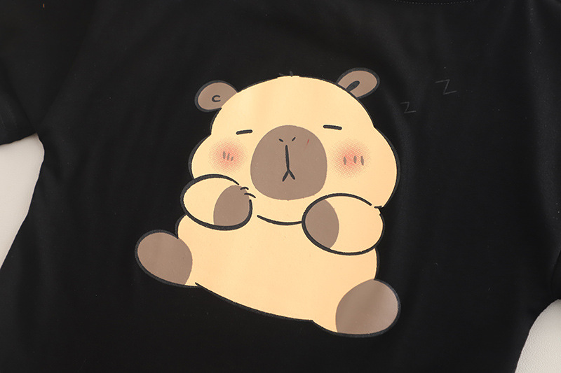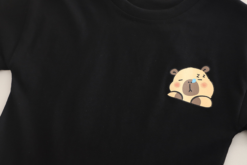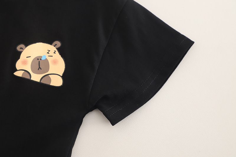 – Tricou realizat din material de calitate superioară, în culoare neagră. Model cu croială lejeră și confortabilă, decolteu rotund și mâneci scurte. Decorat cu un imprimeu mic cu ursuleț în față și unul mare pe spate.