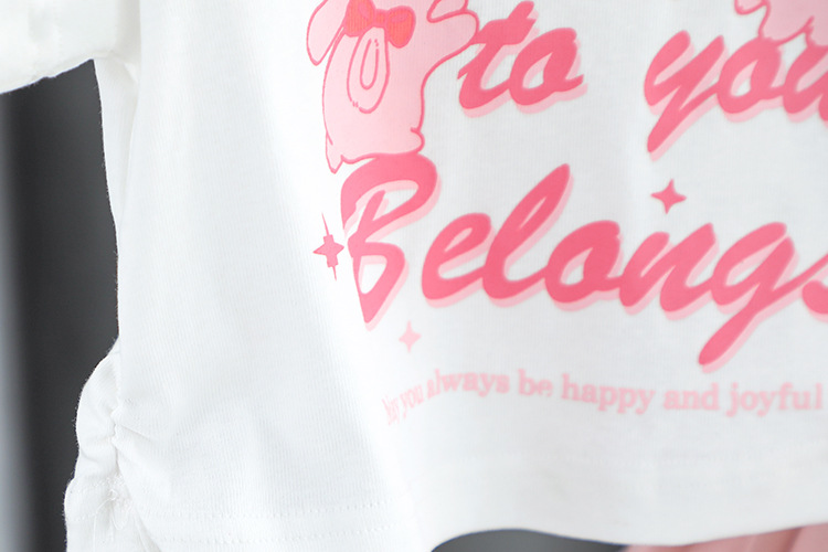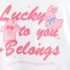 -Tricou din bumbac alb. Model cu croială standard, mâneci scurte și decolteu rotund, decorat cu un imprimeu mare cu textul “Lucky to you” și personaje animate – un iepuraș și un ursuleț.