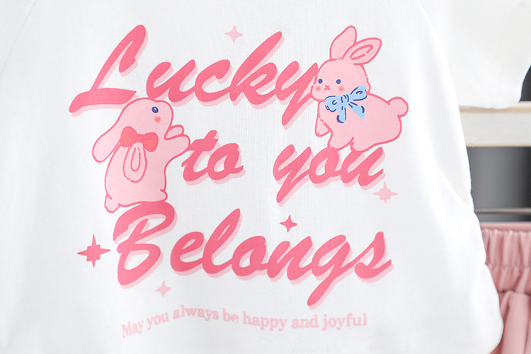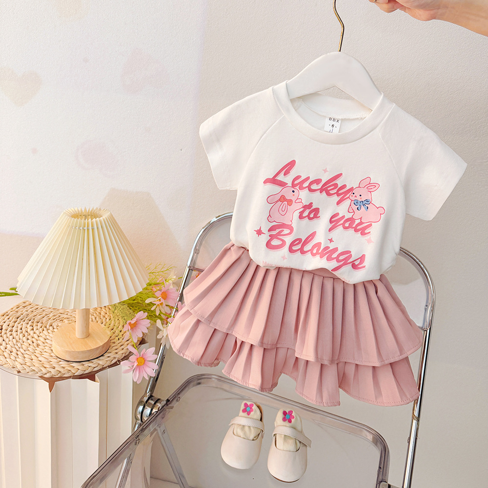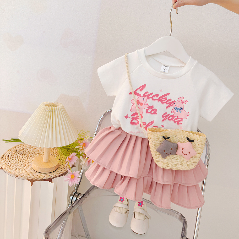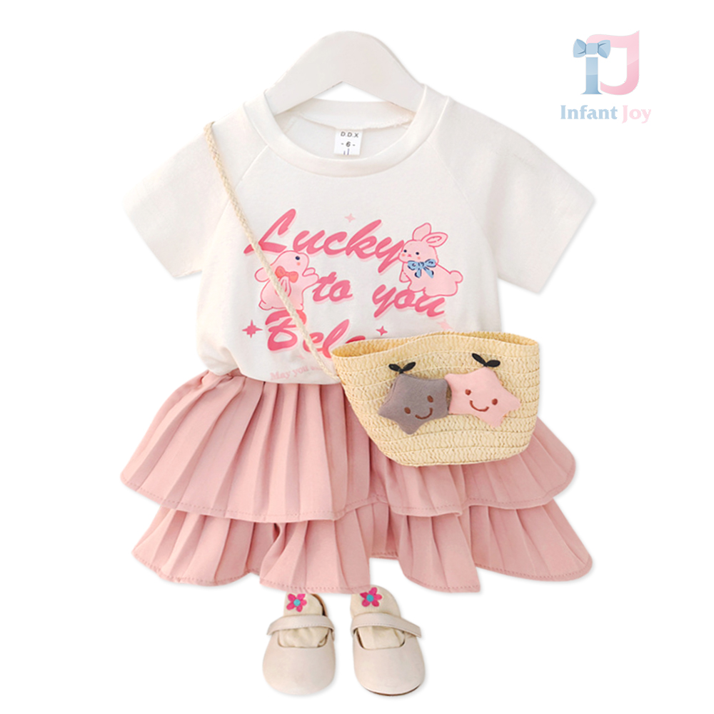 Set de 3 piese cu tricou, fustă-pantalon plisată și geantă de umăr Lucky Bunny