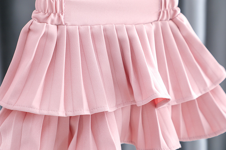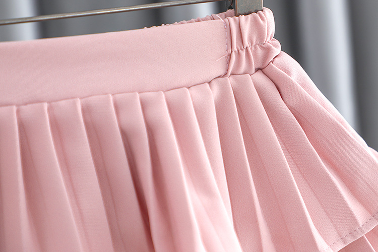 -Fustă-pantalon din material rezistent, în culoarea trandafir prăfuit. Model cu două straturi plisate, ce combină aspectul de fustă cu confortul pantalonului scurt. Talie elastică adăugată în spate pentru confort și îmbrăcare ușoară.