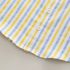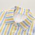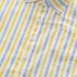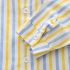 – Cămașă în dungi în tonuri pastelate — alb, galben și albastru. Are nasturi pe toată lungimea pentru o îmbrăcare ușoară și un buzunar funcțional la piept, vizibil clar în imagine. Gulerul clasic și mânecile suflecate oferă un aspect elegant și îngrijit.