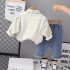 – Pantalon din denim cu croială lejeră și talie elastică, asigurând confort și ușurință la îmbrăcare. Cracii sunt terminați cu manșetă pentru un aspect modern și finisat, iar denimul este moale și potrivit pentru joacă activă.