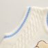 – Vestă tricotată în culoare crem, confecționată dintr-un material moale, cu textură în relief și model torsadă. Este decorată cu o aplicație mare din pluș în formă de ursuleț în față, pentru un accent jucăuș. Modelul se închide cu nasturi pe toată lungimea, inclusiv un nasture decorativ cu design de ursuleț în centru, care adaugă un plus de farmec.