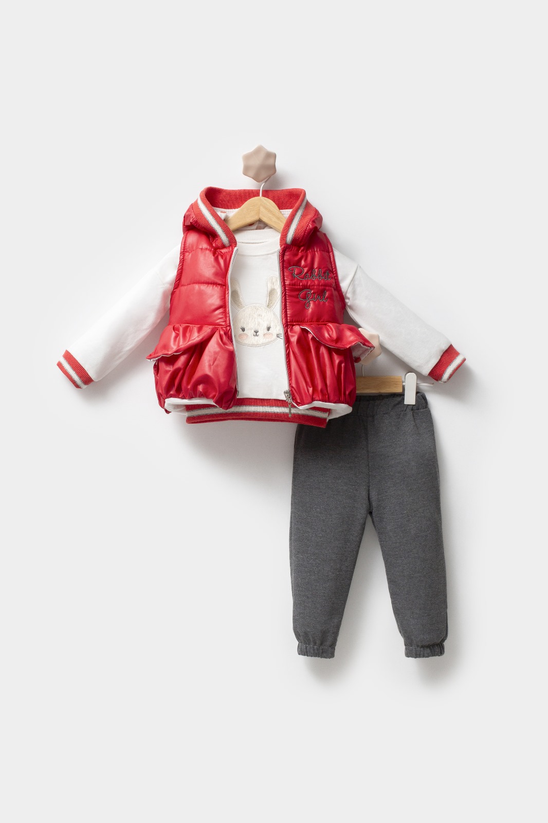 Set de 3 piese cu vestă cu glugă, bluză/hanorac cu aplicație și colanți Ruby Charm