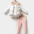 -Vestă confecționată din material fâș de înaltă calitate, în nuanță alb-imaculat. Decorată cu imprimeu floral delicat și completată cu căptușeală roz-pal. Model cu glugă, închidere frontală cu fermoar pe toată lungimea pentru confort și protecție suplimentară împotriva vântului.