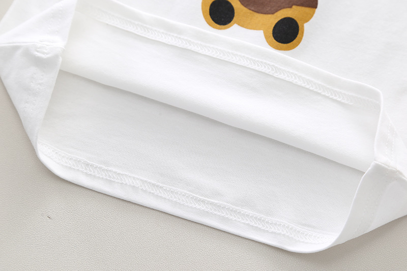– Tricou alb din bumbac, cu croială clasică, decolteu rotund + imprimeu pe partea din față.