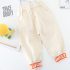 – Pantalon crem din bumbac moale, cu terminații elastice în două culori – confortabil și ideal pentru joacă zilnică.
