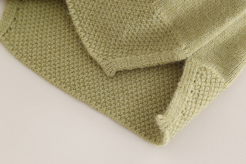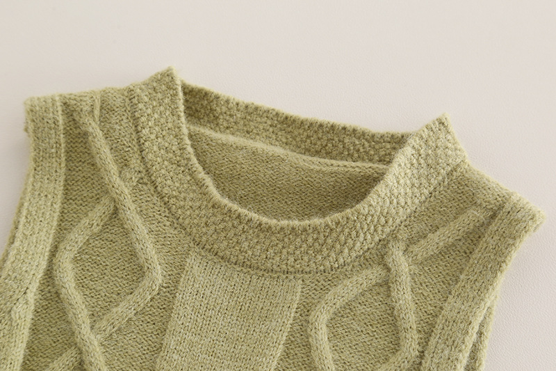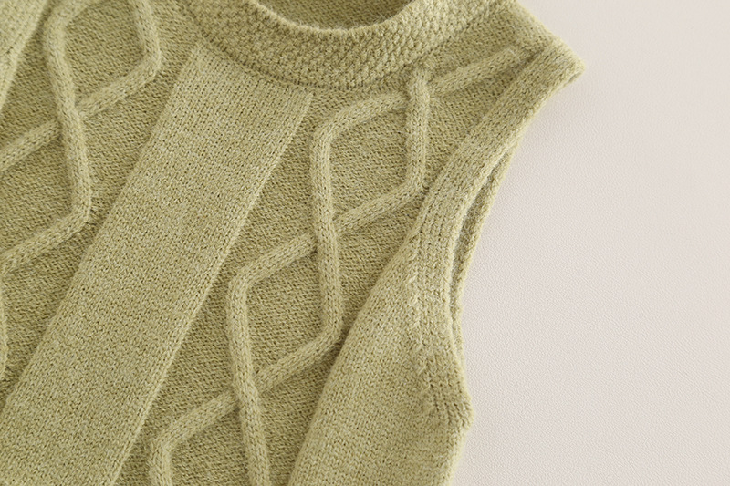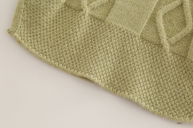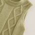 – Vestă tricotată în verde pastel, cu textură elegantă de torsade rombice și tiv ușor asimetric. Confecționată din tricotaj fin – perfectă ca piesă de suprapunere pentru primăvară și toamnă.