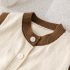 – Vestă tricotată în culoare vanilie, cu tivuri contrastante în nuanță ciocolatie. Închidere completă în față cu nasturi + aplicație 3D drăgălașă cu ursuleț și inscripția „Cookie”. Designul este confortabil, interesant și potrivit pentru copii.