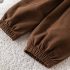 – Pantalon în culoare ciocolatie închisă, cu bandă elastică în talie și manșete elastice strânse în partea de jos. Modelul are buzunare laterale cargo decorative cu clapete și inscripție decorativă, care adaugă o notă modernă de stil „street”.