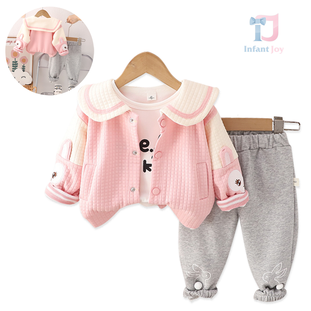 Set de 3 piese cu bomber cu efect de vafe și elemente 3D Cutest Rabbit Girl