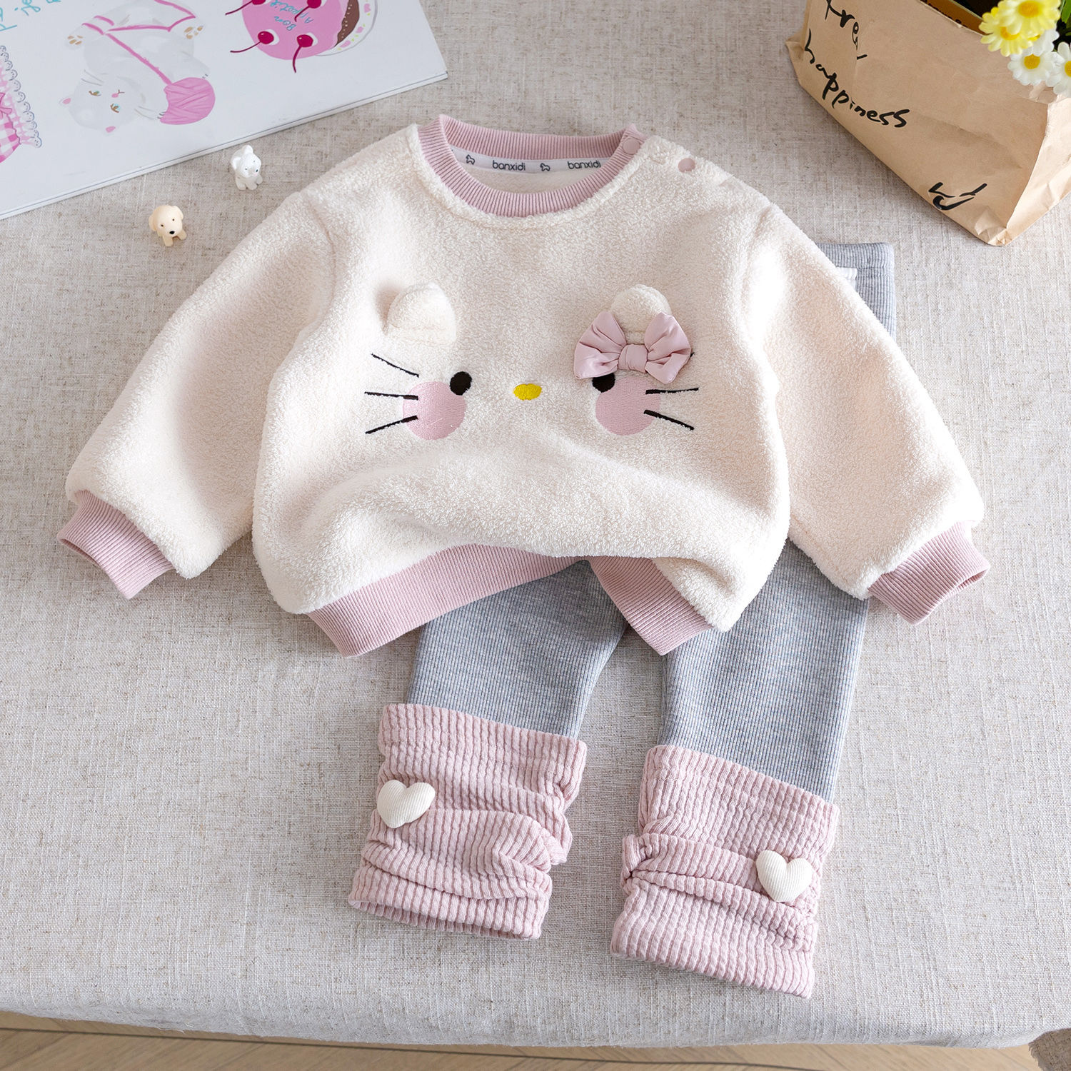 🐱 Set delicat și fermecător din 2 piese pentru fetiță, creat cu atenție la fiecare detaliu și cu un aspect extrem de drăgălaș și confortabil – ideal pentru micile prințese.