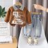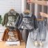 Set de 3 piese din bluză/sweatshirt cu imprimeuri, pantaloni din denim și guler detașabil din denim Urban Street