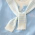 – Accentu îl reprezintă capa decorativă tricotată – tip șal în dungi alb-albastre, care oferă un aspect elegant și distinctiv.