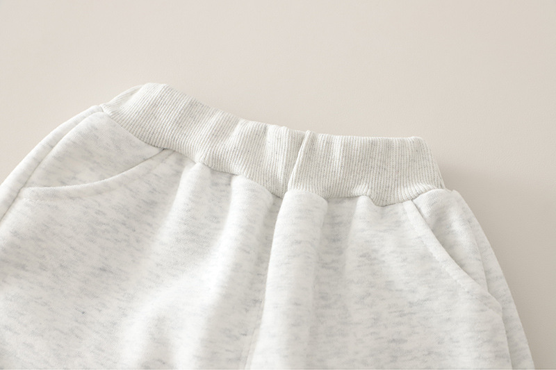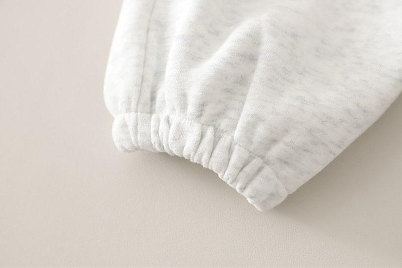 – Pantalon de culoare gri deschis, realizat din material moale și plăcut la atingere. Modelul are talie elastică confortabilă și elastic la baza cracului pentru o potrivire optimă. Este completat cu inscripția „allo” pe lateral, care se asortează cu bluzița și creează un stil complet, coordonat.