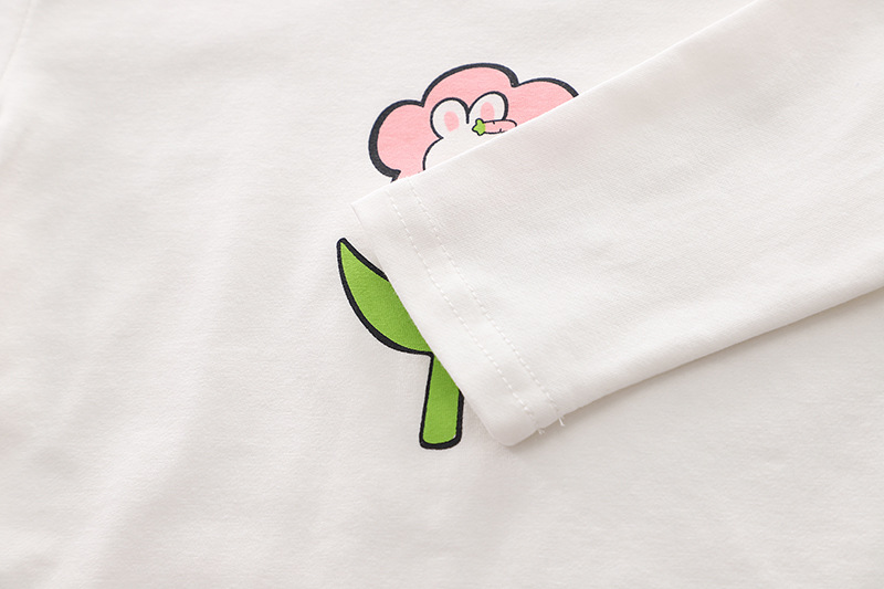 -Bluză albă din bumbac, ușor elastică, cu croială standard + imprimeu vesel frontal.