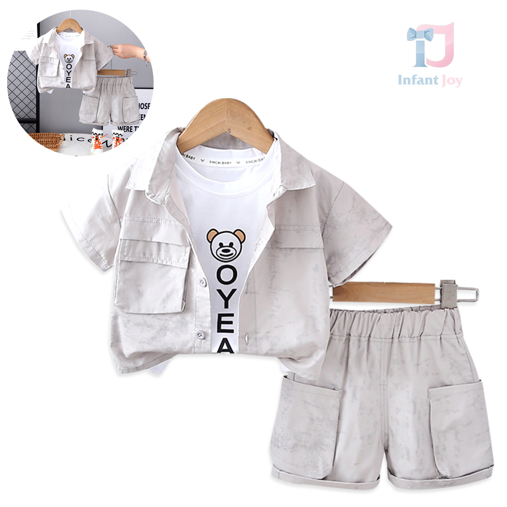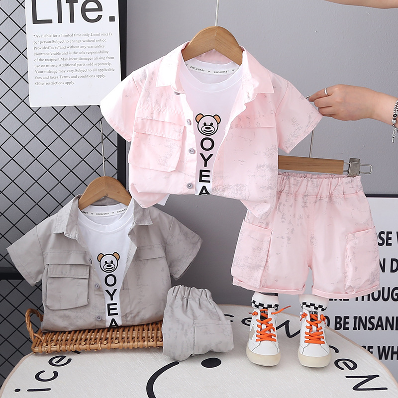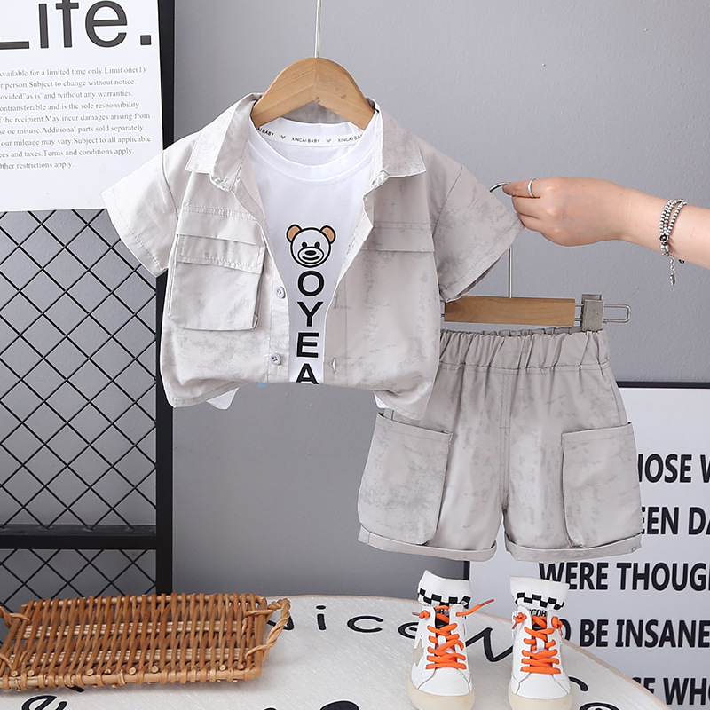 Set de 3 piese din cămașă cu guler clasic, tricou și pantaloni scurți tip cargo Downtown