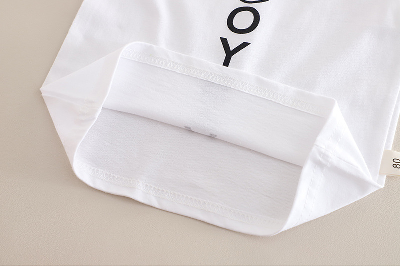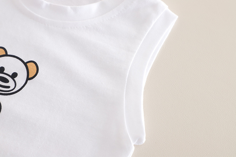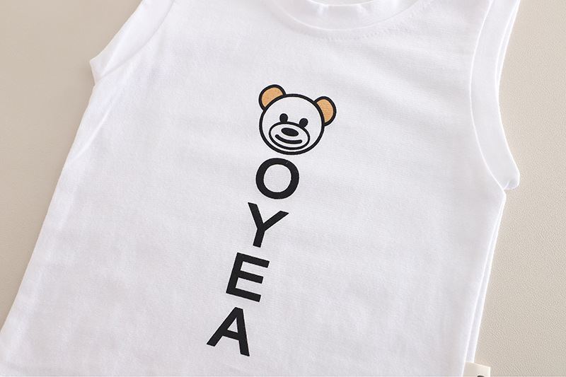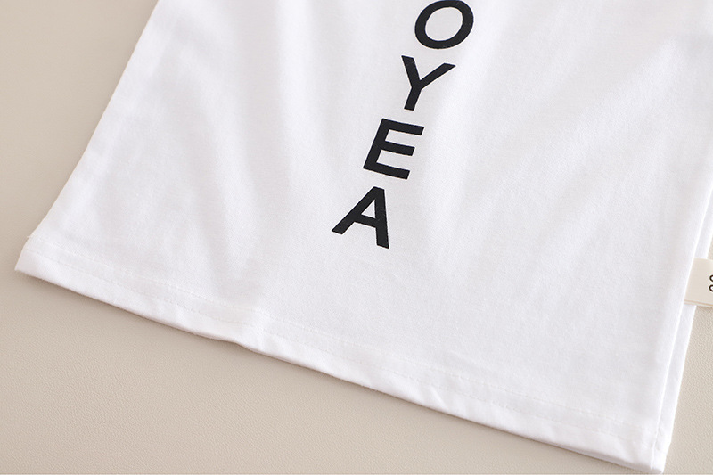 -Maiou alb cu decolteu rotund, din bumbac moale – decorat cu un imprimeu cu ursuleț zâmbitor și inscripția verticală „OYEA” pentru un accent vesel și jucăuș.