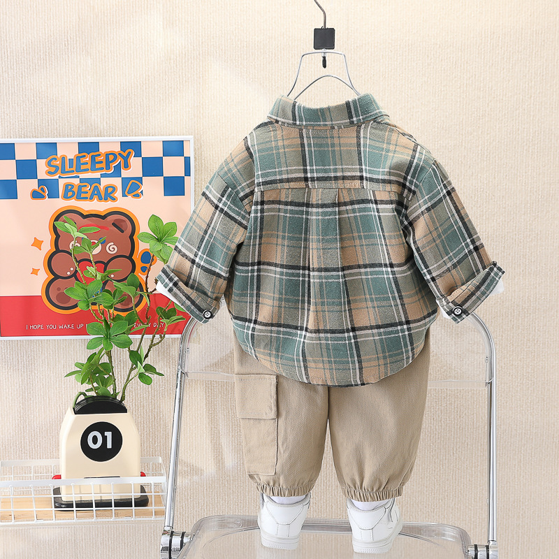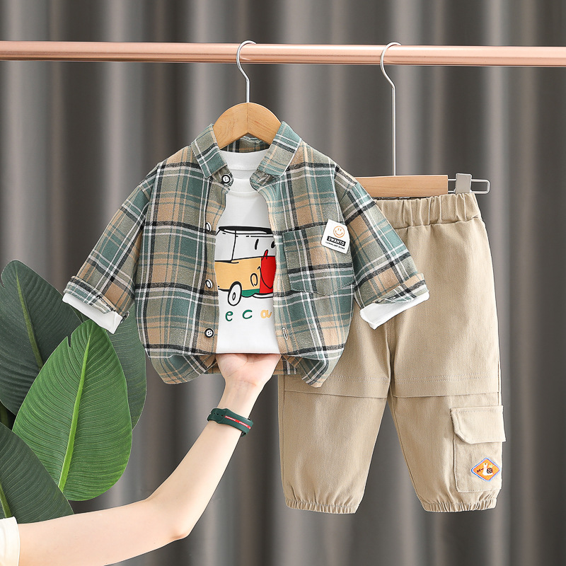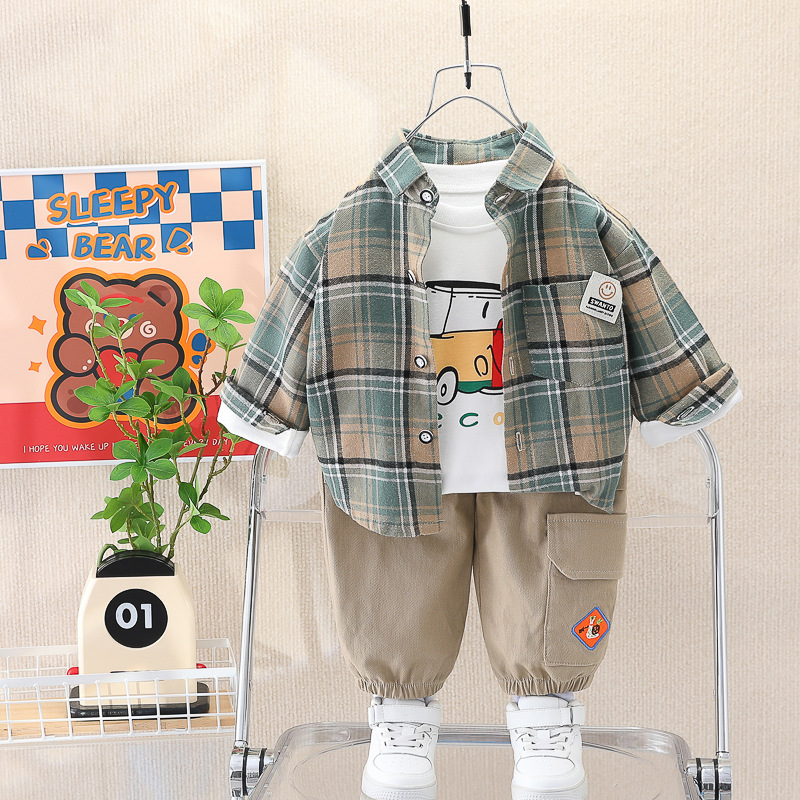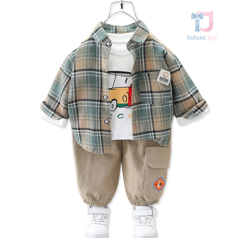 Set de 3 piese din cămașă în carouri, bluză cu imprimeu și pantaloni cargo Weekend Mood