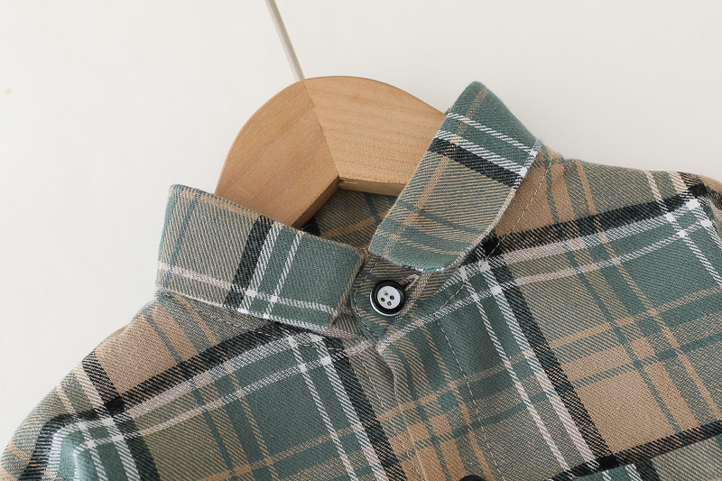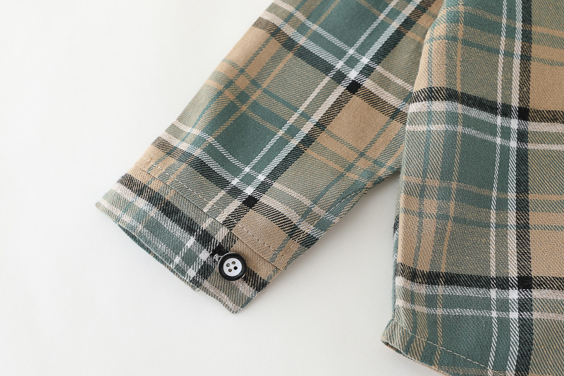 -Cămașă confecționată din material de înaltă calitate, cu model în carouri în nuanțe de verde măsliniu, bej nisipiu și ocru închis – tonuri naturale și stilate. Model cu guler clasic, închidere cu nasturi + buzunar cu emblemă pe o parte, care completează ținuta.