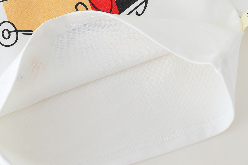 -Bluză din bumbac cu ușoară elasticitate, în alb, cu croială standard + imprimeu haios cu o mașină retro în culori vii.