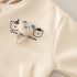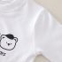 – Bluză cu mânecă lungă, confecționată din material moale din bumbac, de culoare albă. Modelul are decolteu rotund și imprimeu cu ursuleți și inscripție în partea din față, care completează tematic aspectul setului.