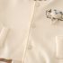 – Geacă tip bomber, confecționată din material moale și din bumbac, în nuanță crem delicată. Modelul are guler clasic tip bomber, închidere frontală cu capse și două buzunare laterale. Accentul este elementul 3D adorabil cu ursuleț în partea superioară, care oferă un aspect jucăuș și copilăresc. Mânecele și tivul sunt finisate cu manșete contrastante din tricot elastic, într-o nuanță caramel.