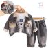 Set de 3 piese din jachetă din denim cu guler clasic, element 3D, bluză și pantaloni Special Bear