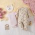 – Salopetă cu mânecă lungă, confecționată dintr-un material moale și plăcut la atingere, într-o nuanță caldă de bej. Modelul are imprimeu integral cu căprioare și elemente florale delicate. Se închide în față cu capse pe toată lungimea pentru un plus de confort la îmbrăcare.