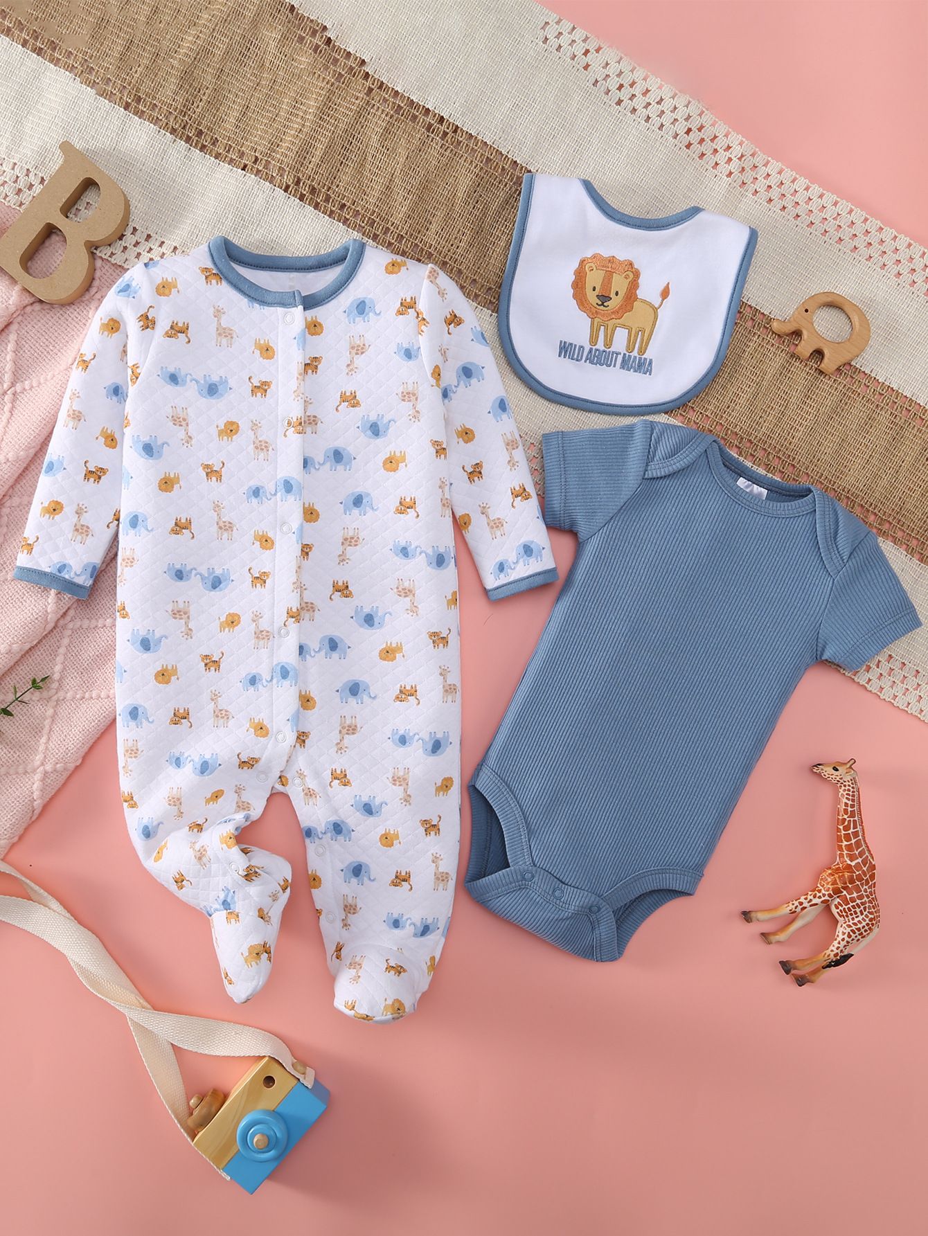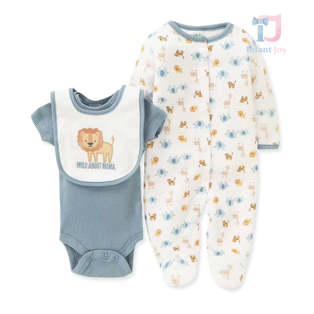 🦁 Set dulce pentru bebeluși din 3 piese, cu motive animale – moale, confortabil și creat pentru zile liniștite și momente pline de confort.
