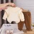 🐻 Compoziție: vestă – 85% acril, 15% poliester, bluză și pantaloni – 65% poliester, 35% bumbac.