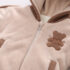 -Hanorac din material polar de înaltă calitate, cu glugă prevăzută cu urechiușe. Model cu interior plușat, închidere frontală completă cu fermoar + protecție, manșete elastice, două buzunare și benzi decorative pe lungimea mânecilor. Broderie cu ursuleț și inscripții în partea stângă.