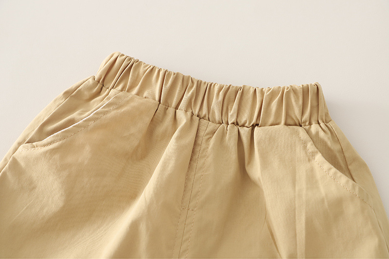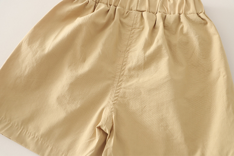 – Pantaloni scurți într-o nuanță bej, confecționați dintr-un material comod și ușor. Modelul are două buzunare, talie elastică pentru confort și libertate de mișcare, precum și o croială practică potrivită pentru joaca de zi cu zi.