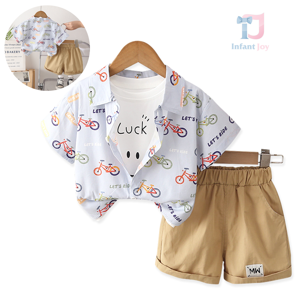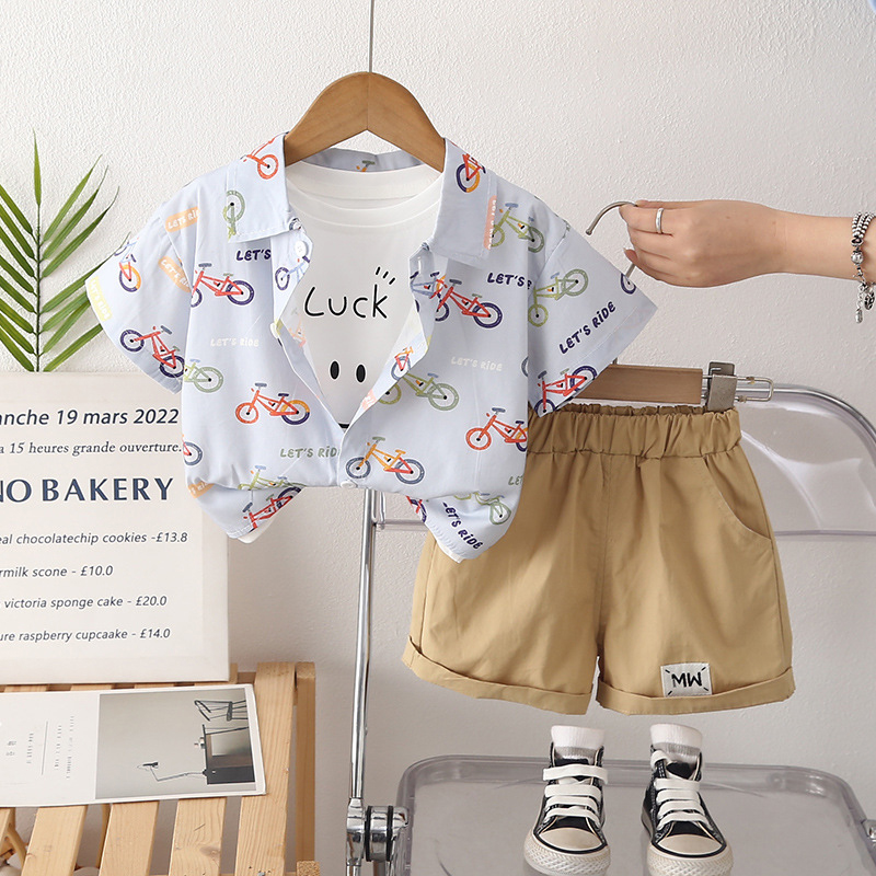 Set de 3 piese format din cămașă cu guler clasic, tricou și pantaloni scurți My Bike