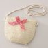 – Poșetuță mică de umăr într-o nuanță naturală bej, cu textură împletită, decorată cu o fundiță în același imprimeu – un accesoriu stilat care completează perfect ținuta.
