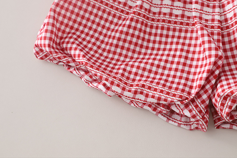 – Fustă/pantalon scurt cu model în carouri roșii-albe, realizat din material ușor și confortabil. Modelul are talie elastică pentru confort și libertate de mișcare, precum și o croială evazată pentru o siluetă lejeră și veselă. Este adăugată o căptușeală din bumbac pentru un plus de confort la purtare.