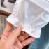 – Bluziță cu mânecă lungă, în alb clasic, confecționată dintr-un material ușor și plăcut la atingere. Modelul are un guler larg, decorat cu dantelă, care oferă un aspect elegant și delicat. Mâneci ușor ample, terminate cu manșete pentru confort și un finisaj stilat. Închidere cu nasture la ceafă pentru îmbrăcare ușoară. Elastic la încheieturi pentru o potrivire confortabilă și o senzație plăcută.
