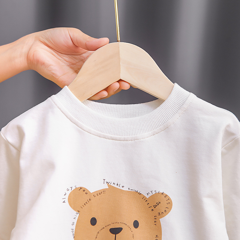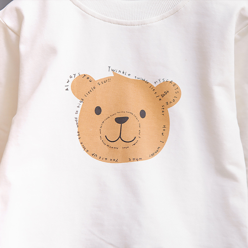 Bluză albă cu mânecă lungă, din bumbac, cu aplicație de ursuleț pe partea din față.