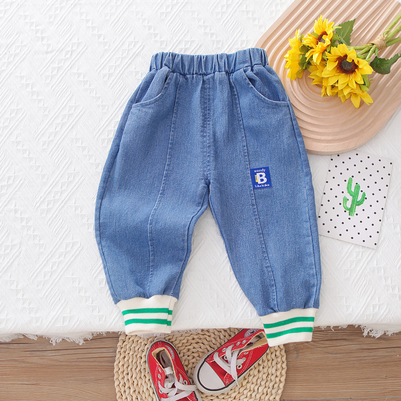 -Pantaloni lungi din denim, cu talie elastică, două buzunare și manșete elastice într-o culoare distinctivă. 🍀O alegere ideală pentru ținute de zi cu zi în zilele răcoroase.