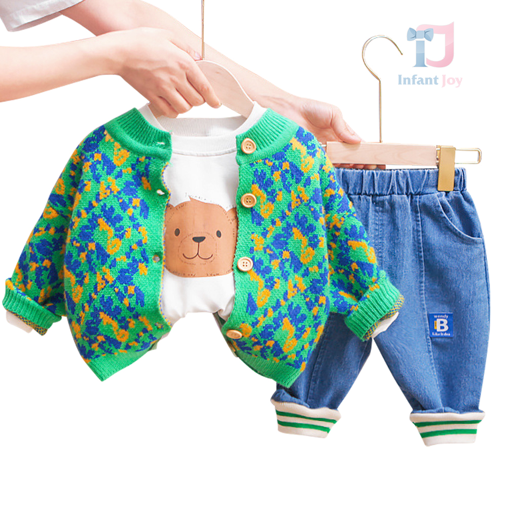 • Set premium de 3 piese cu vestă caldă și denim Hello Little One
