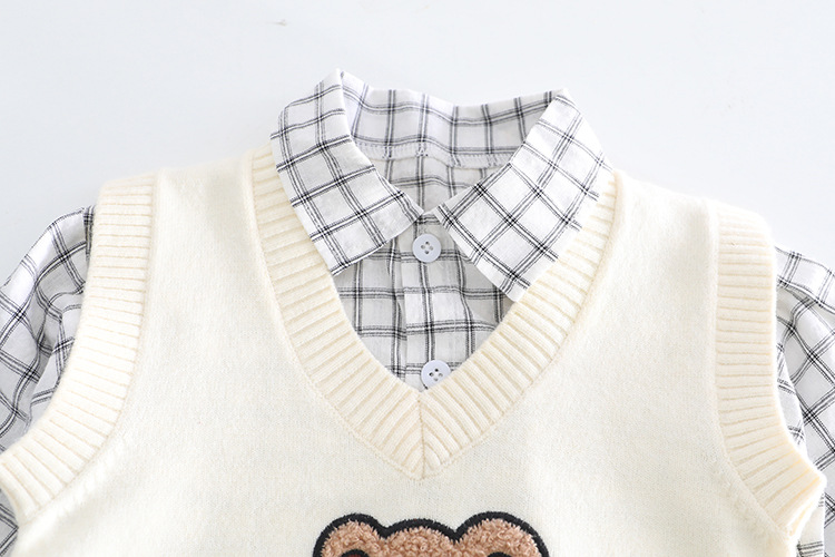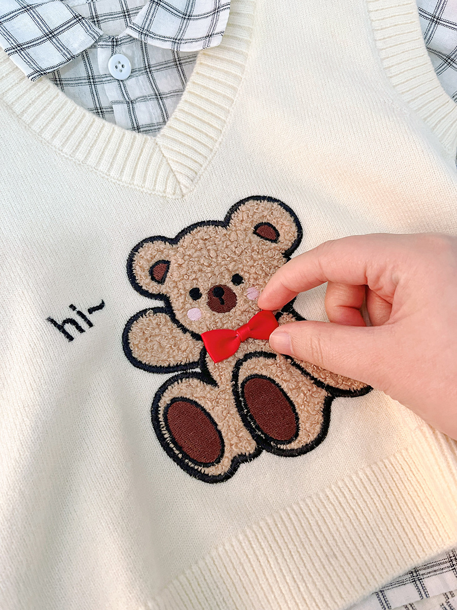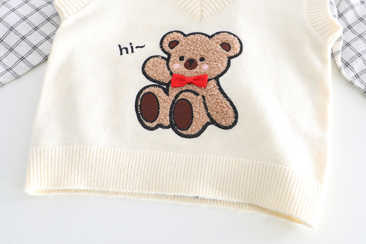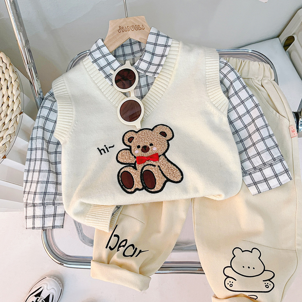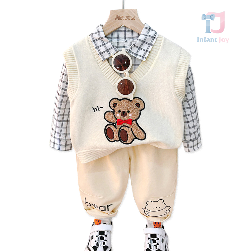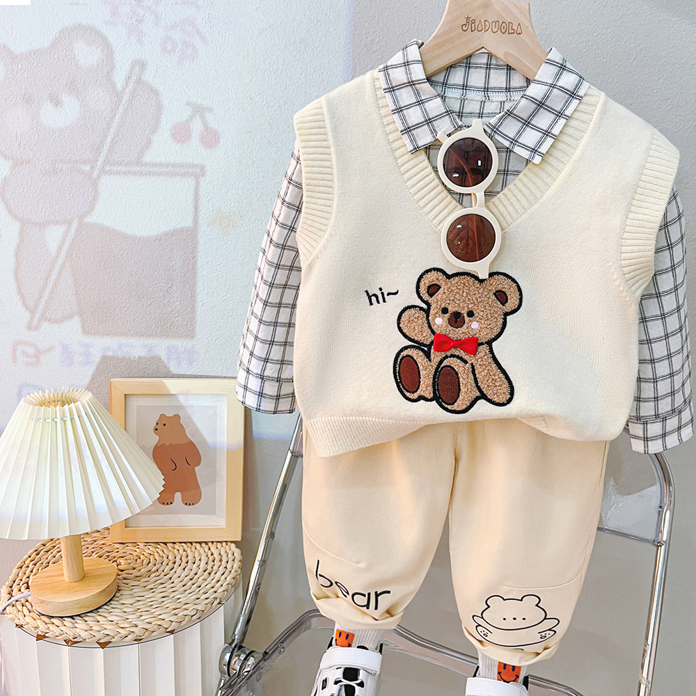 Set premium de 3 piese cu vestă tricotată și imprimare 3D Hi Bear Gentleman