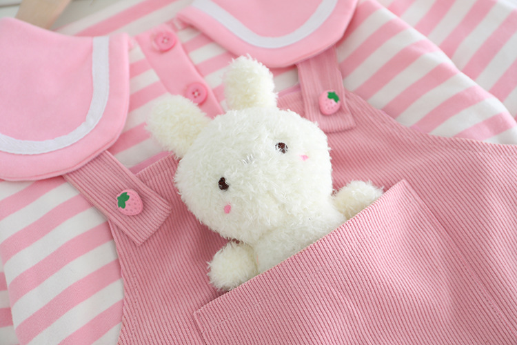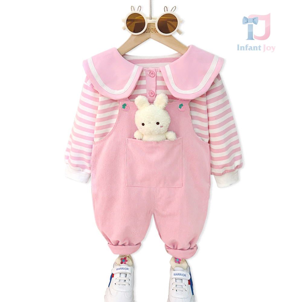 Set de 3 piese cu salopetă, bluză cu guler „Peter Pan” și iepuraș de pluș Hug Bunny