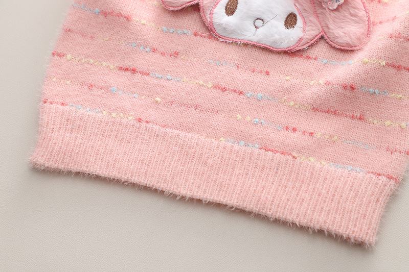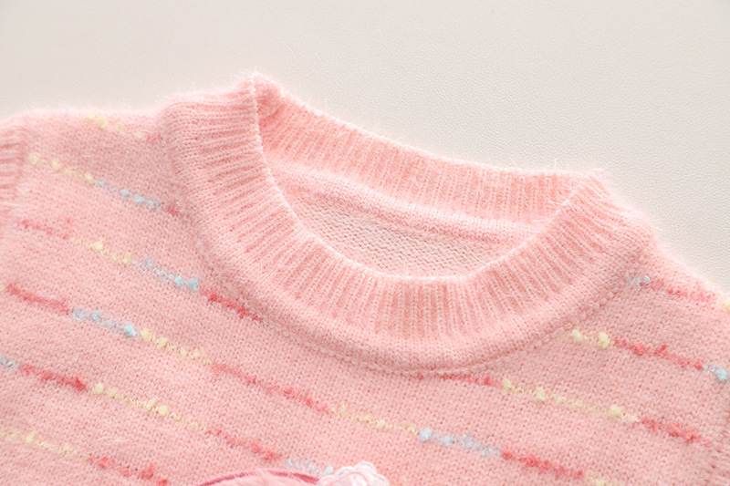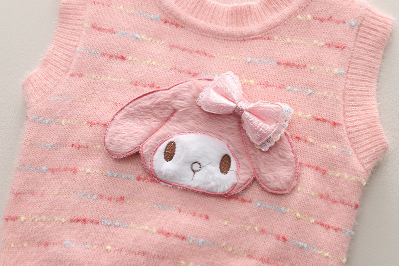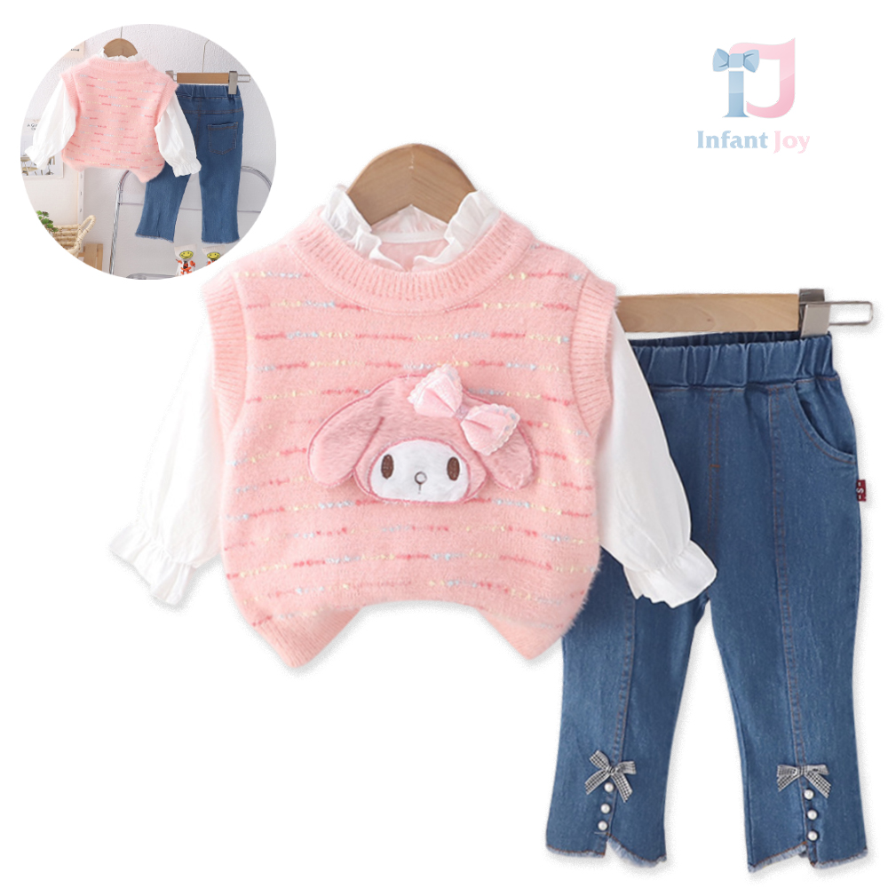 Set sportiv-elegant de 3 piese cu vestă tricotată, bucle și elemente 3D Lady Popular Pink