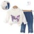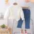 Set sportiv-elegant de 3 piese cu vestă tricotată, bucle și elemente 3D Lady Popular Vanilla