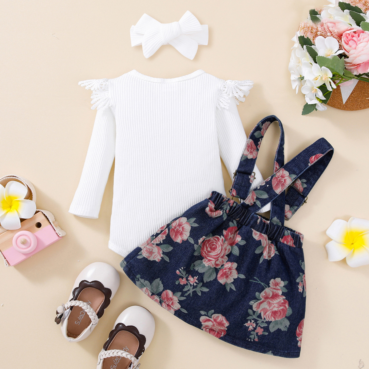 Set de 3 piese cu sukman din denim și bentiță Magic Rose