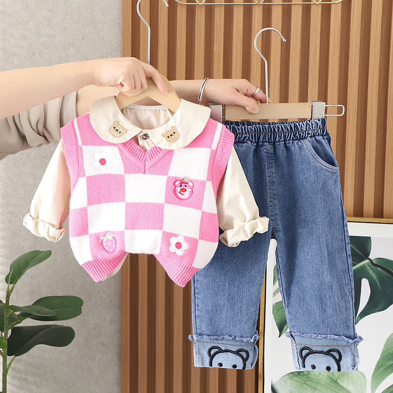 Set premium de 3 piese cu vestă tricotată, broderii și picioare inversate moderne Girls Power