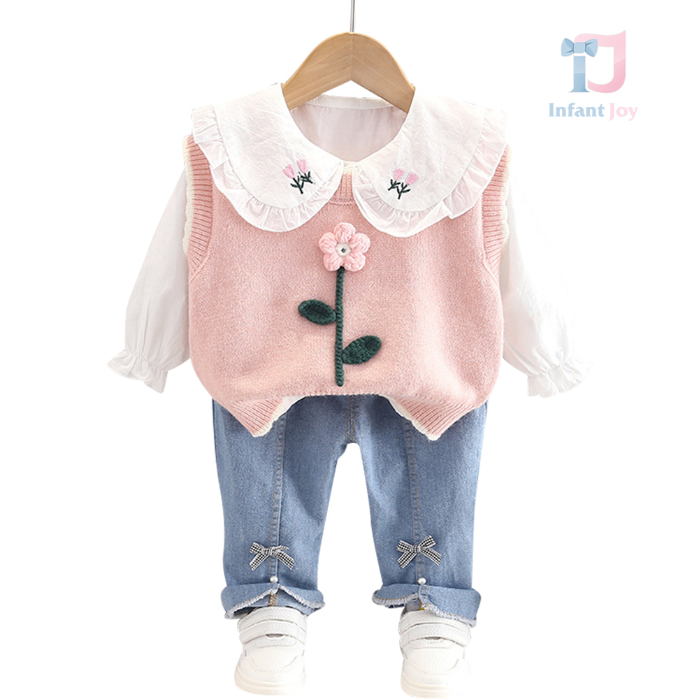 Set sportiv-elegant de 3 piese cu broderie 3D My Mini Flower