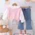 Set premium de 3 piese cu vestă tricotată, broderie și elemente 3D Pink Bunny Garden