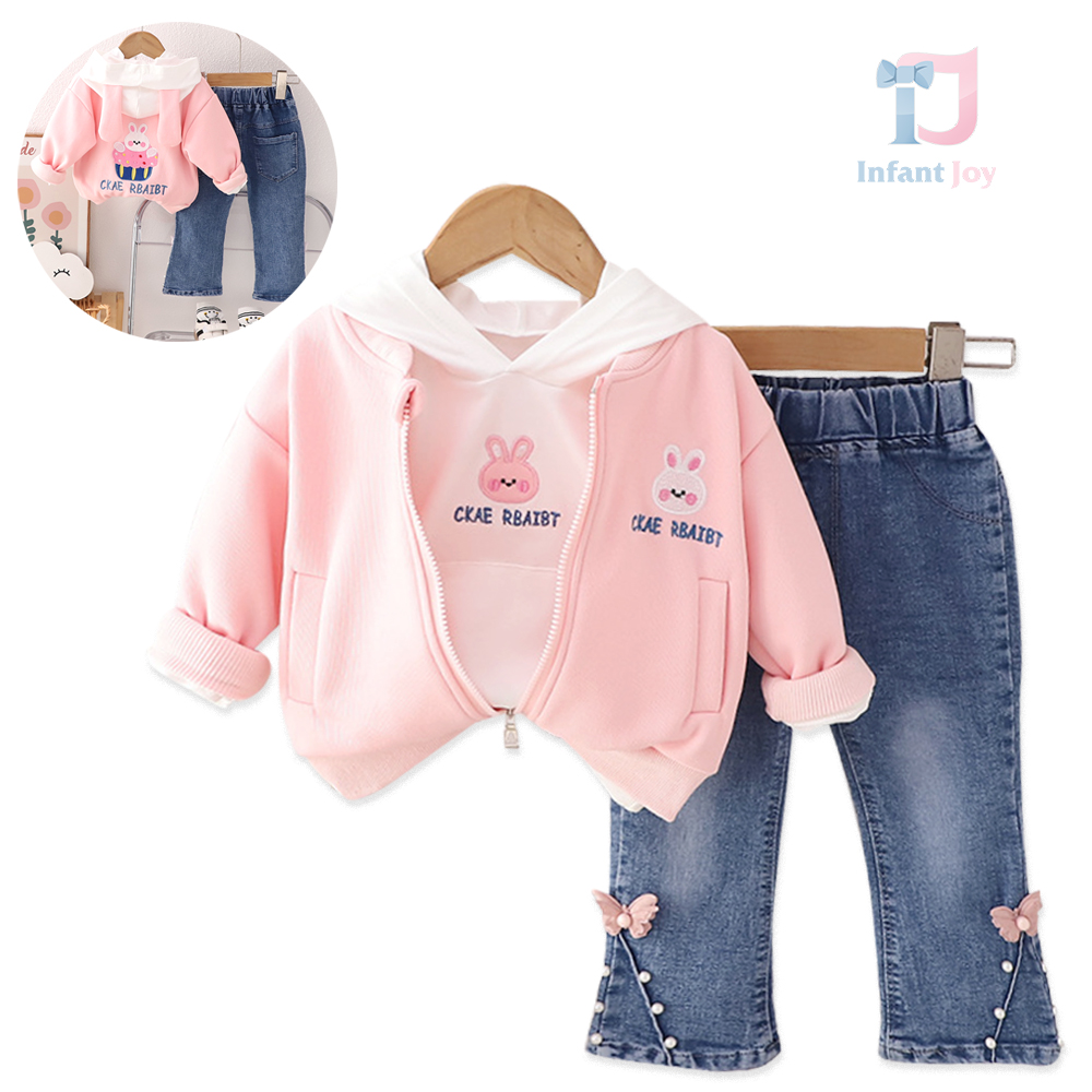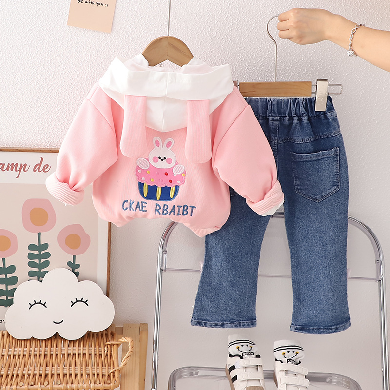 Set de 3 piese cu hanorac, bomber și pantaloni din denim Rabbit Cake